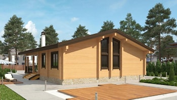 Casa di legno design ottimizzato con una superficie di 120 mq, con un ampio spazio di vita, contiene due camere da letto, uno studio, un soggiorno, sala da pranzo e cucina, bagno spazioso, e un salone con camino. Grande facciata attraverso la quale ...